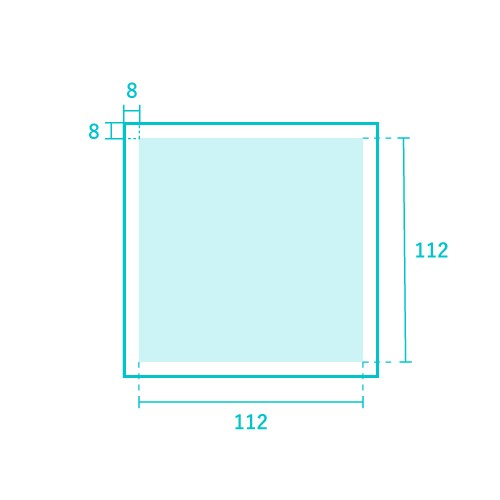 アイコンの周りには上下左右に各8pxの余白を確保してください
