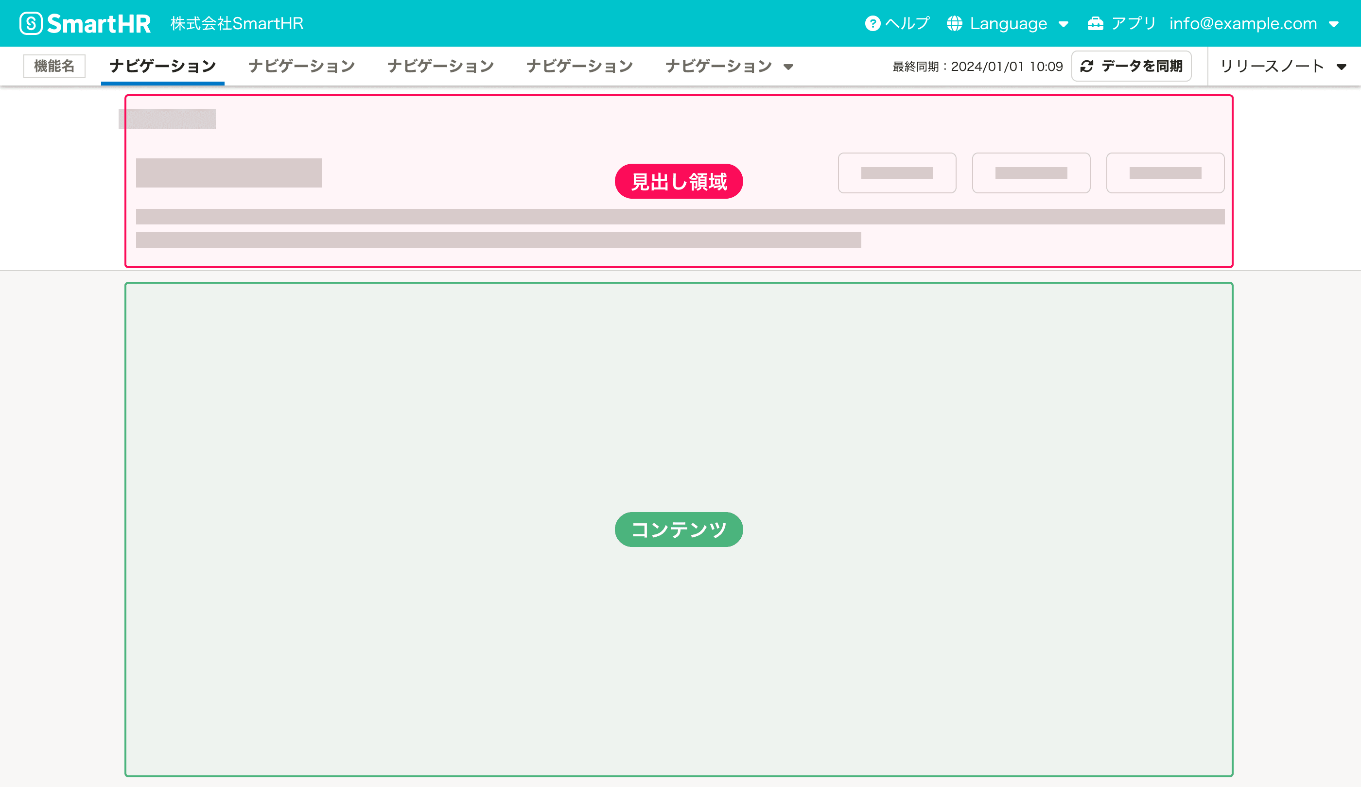 エラー画面を除き、SmartHRが提供する画面ではヘッダーをビューポート最上部に配置します。